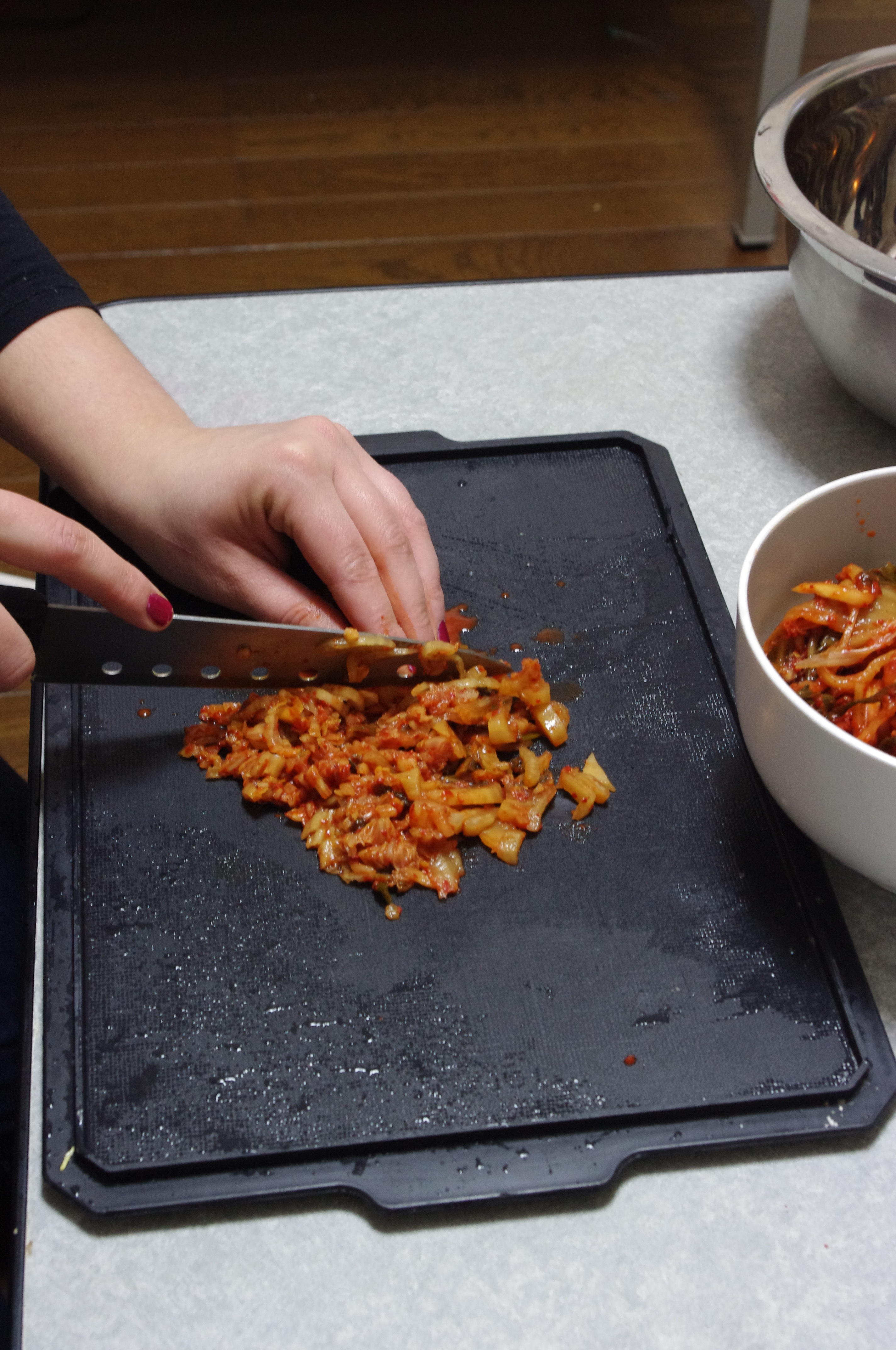 1. Chop the kimchi finely
