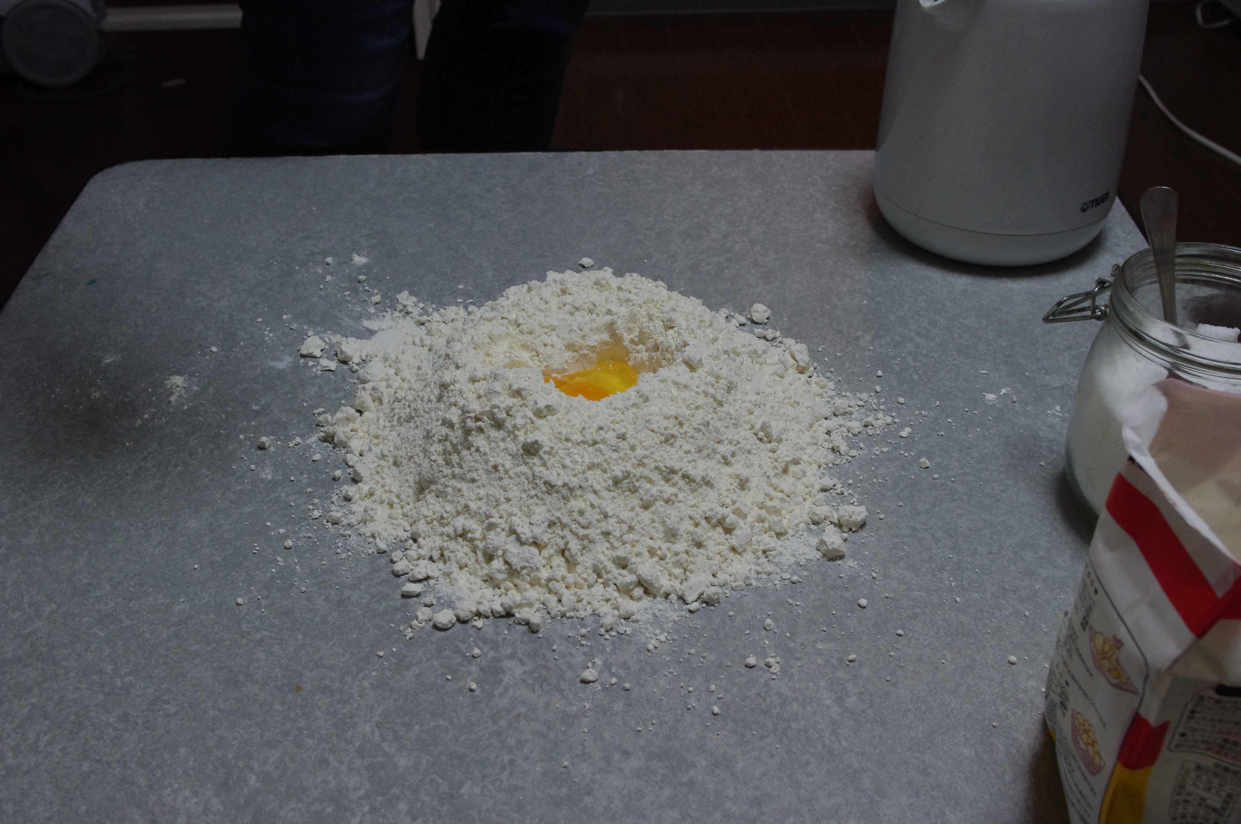 7. So now it’s the time to make the dough. Mix together: flour, salt, egg and water. When the flour, salt and egg are already on the table, like on the picture: