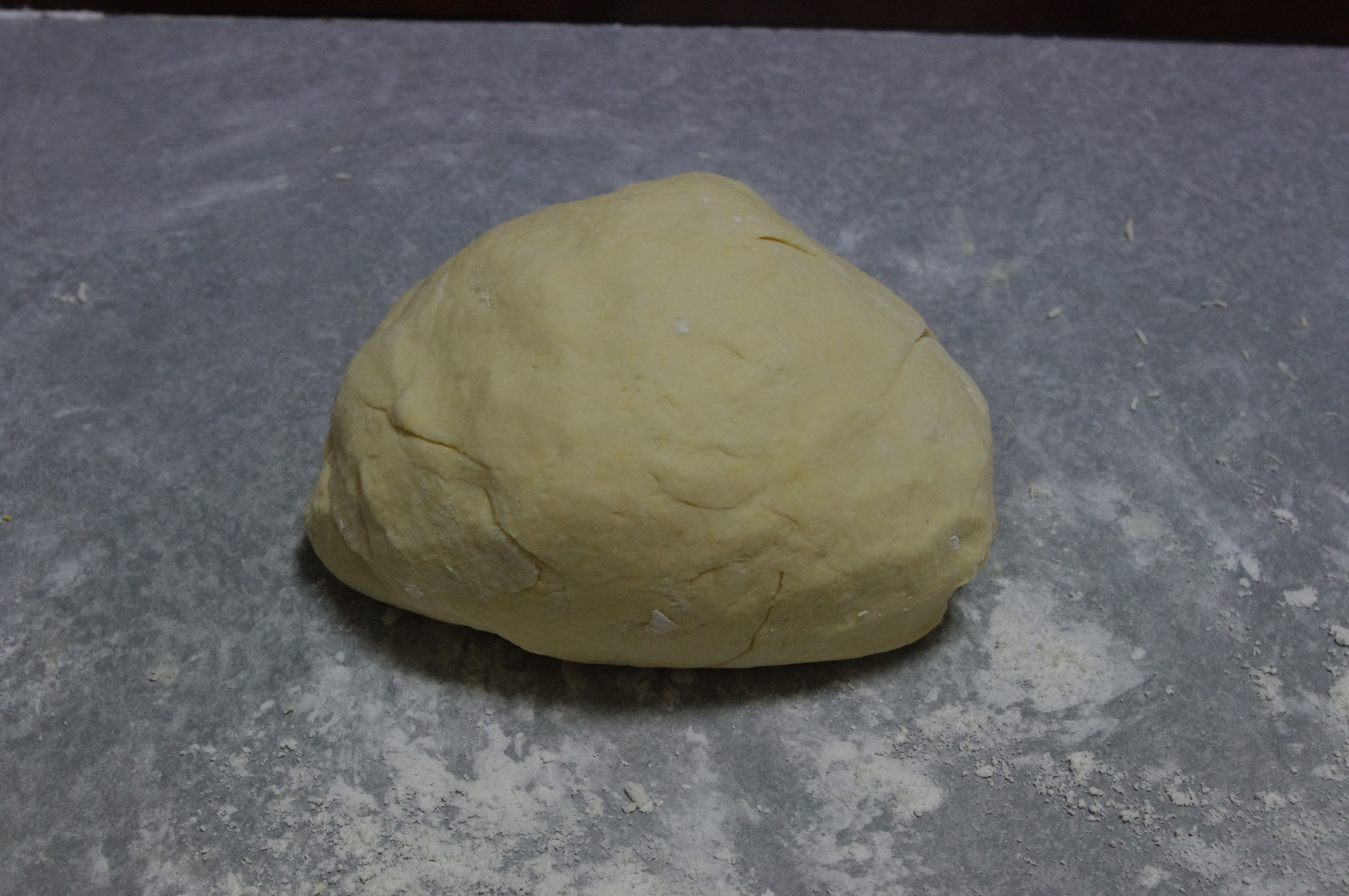 Pour some water into it (slowly) and make the dough. Add as much water as it’s needed. That is how the dough should look like when it’s done: