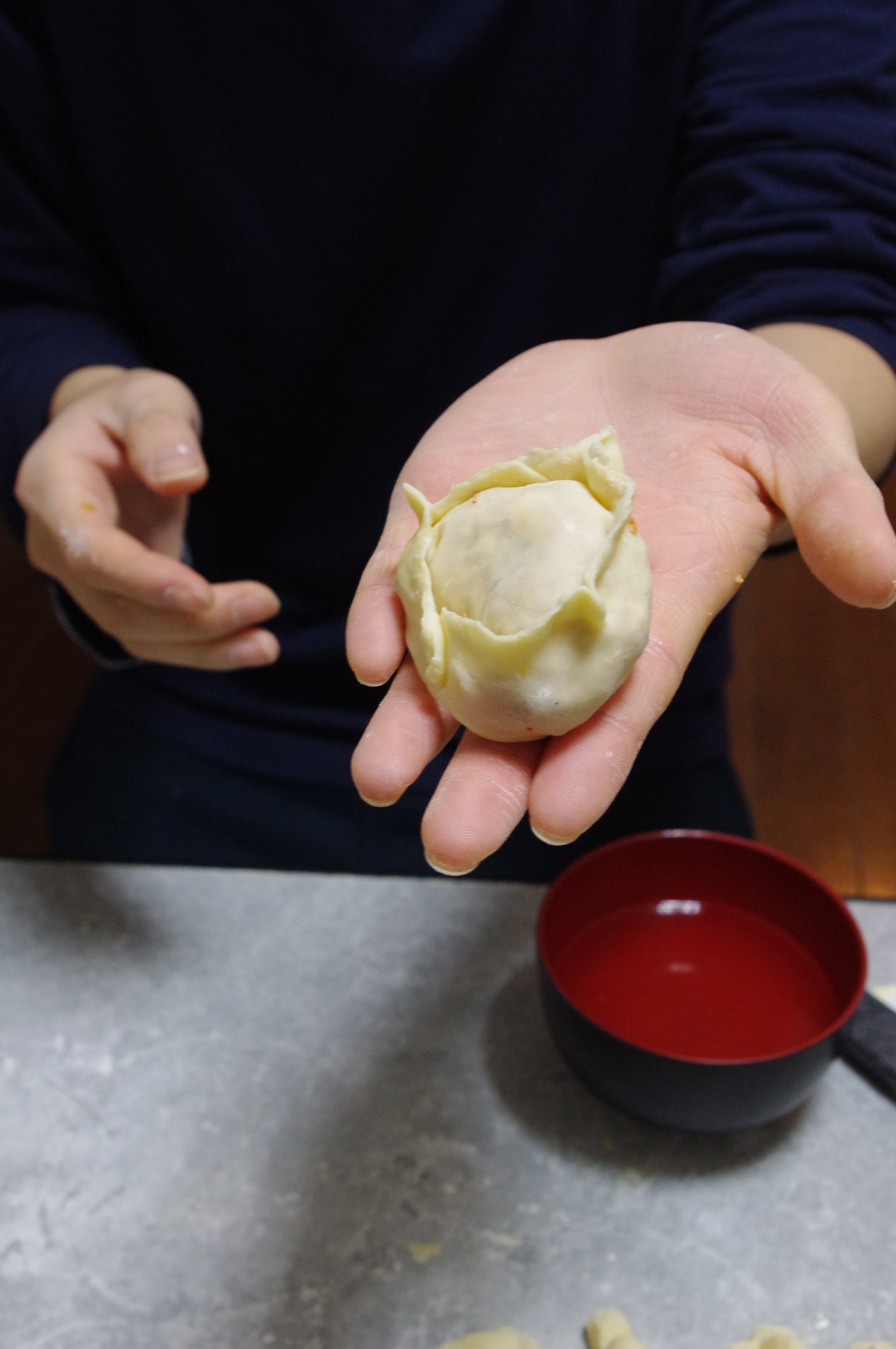 Use the water to stick the dumpling together.