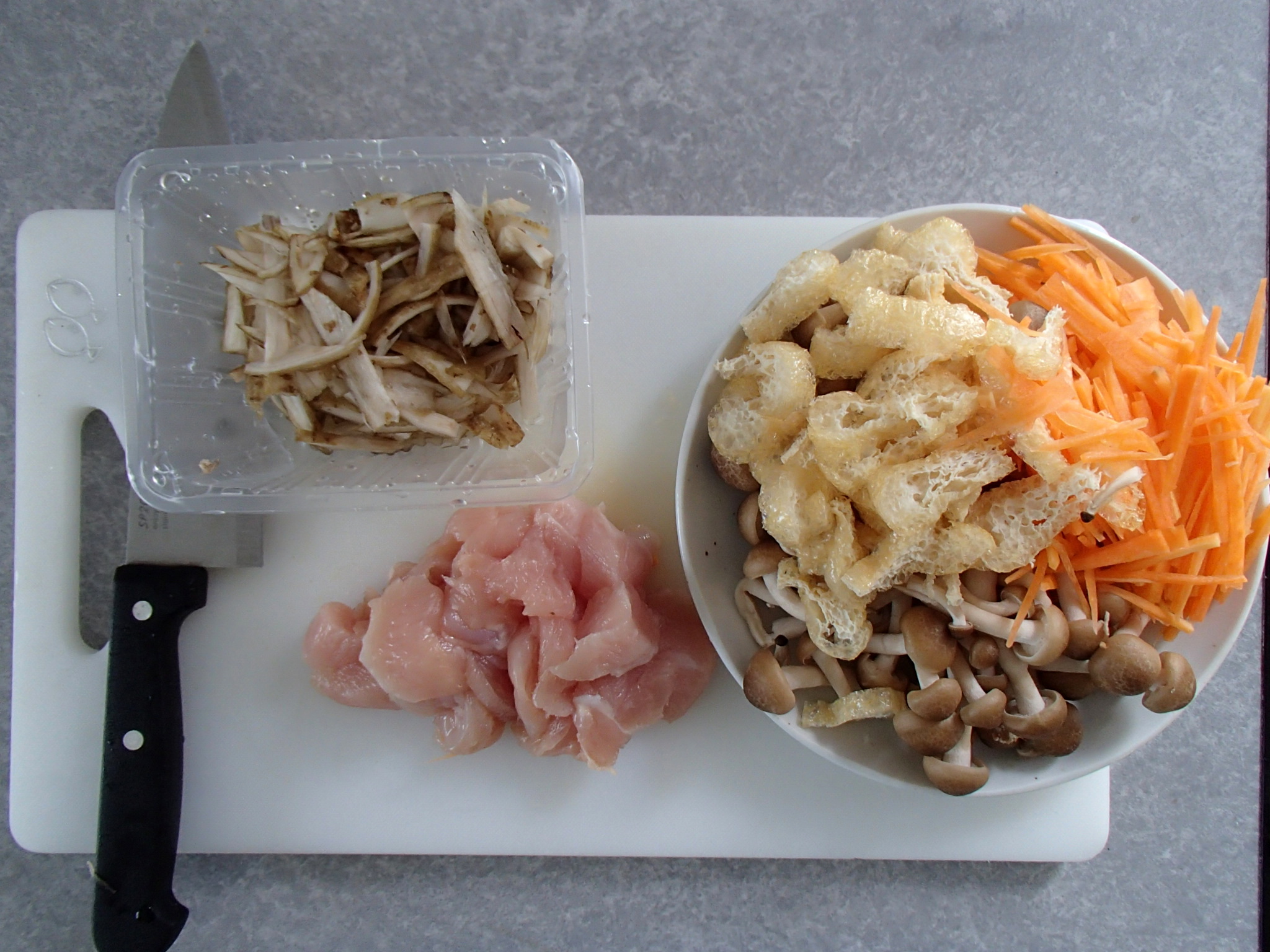 Hmm… maybe it is difficult to buy shimeji but the rest? Burdock (korzeń łopianu) you can probably go into the old park or forest and dig it out :) Fried tofu? I think you can buy it without any problems in any oriental store like Kuchnie Świata.