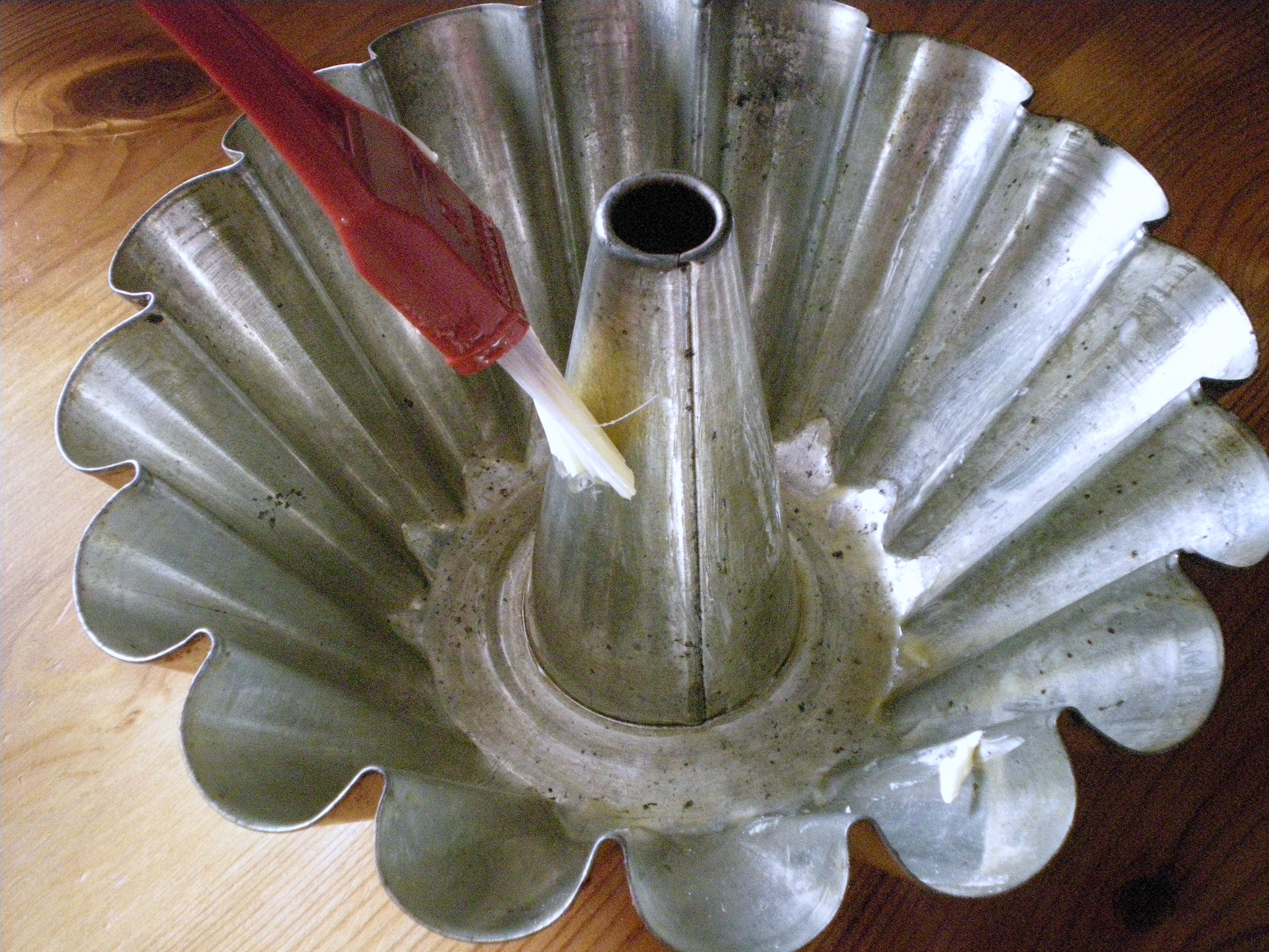 5. Now, prepare babka tin. First, using a brush cover the babka tin with melted butter.