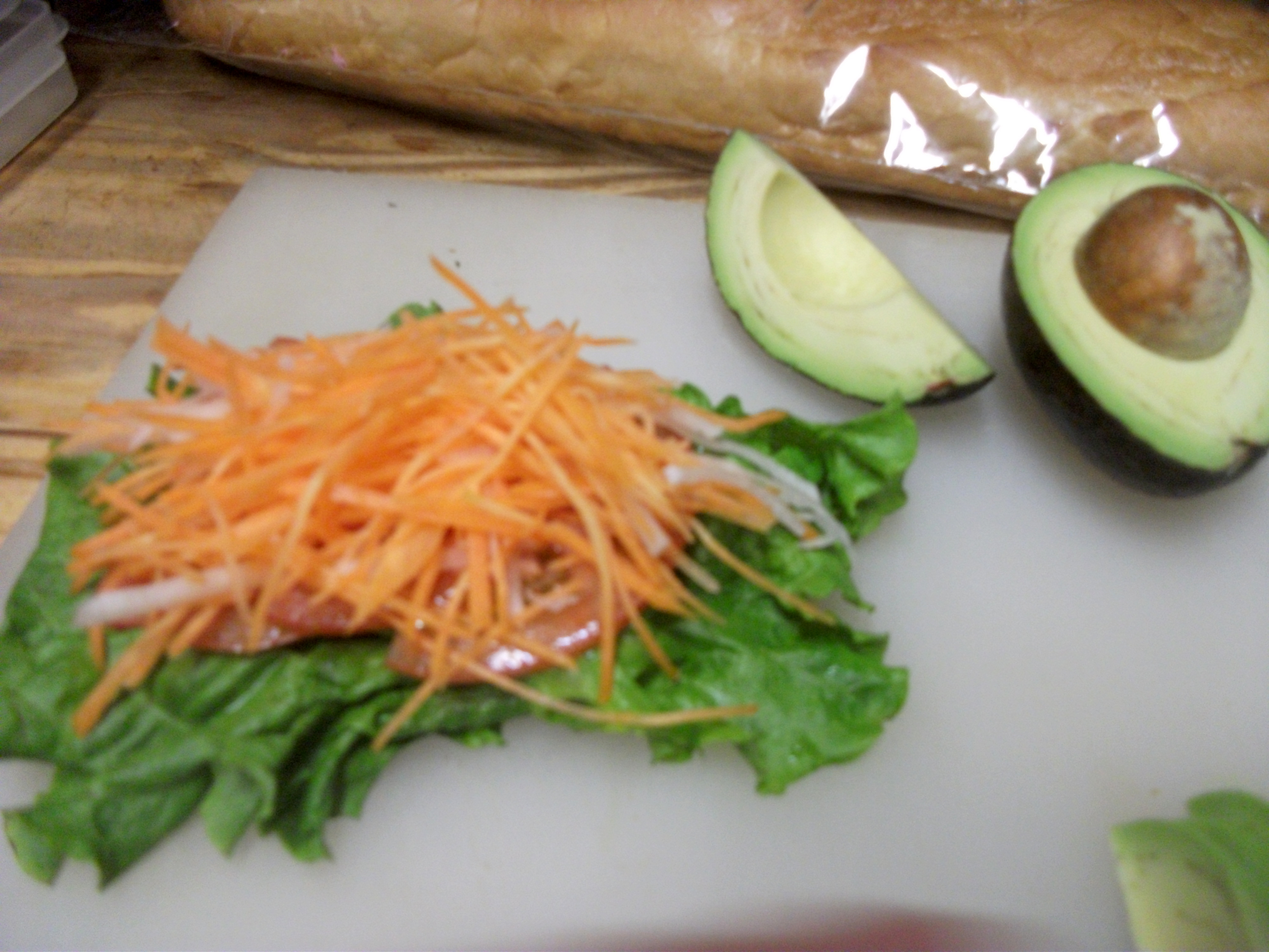 Serve it with some extra lettuce and carrots (if you have some left from making the roll).