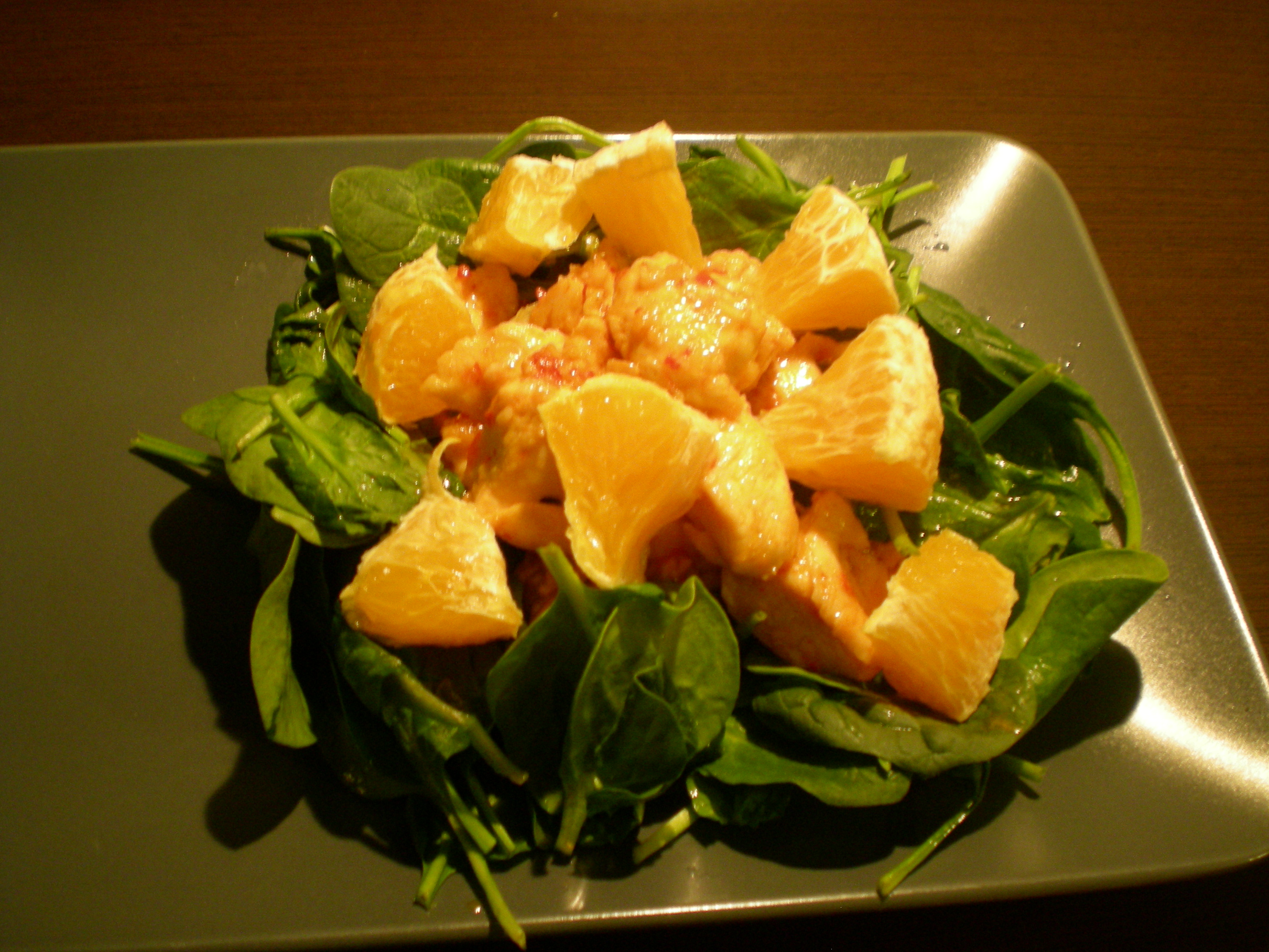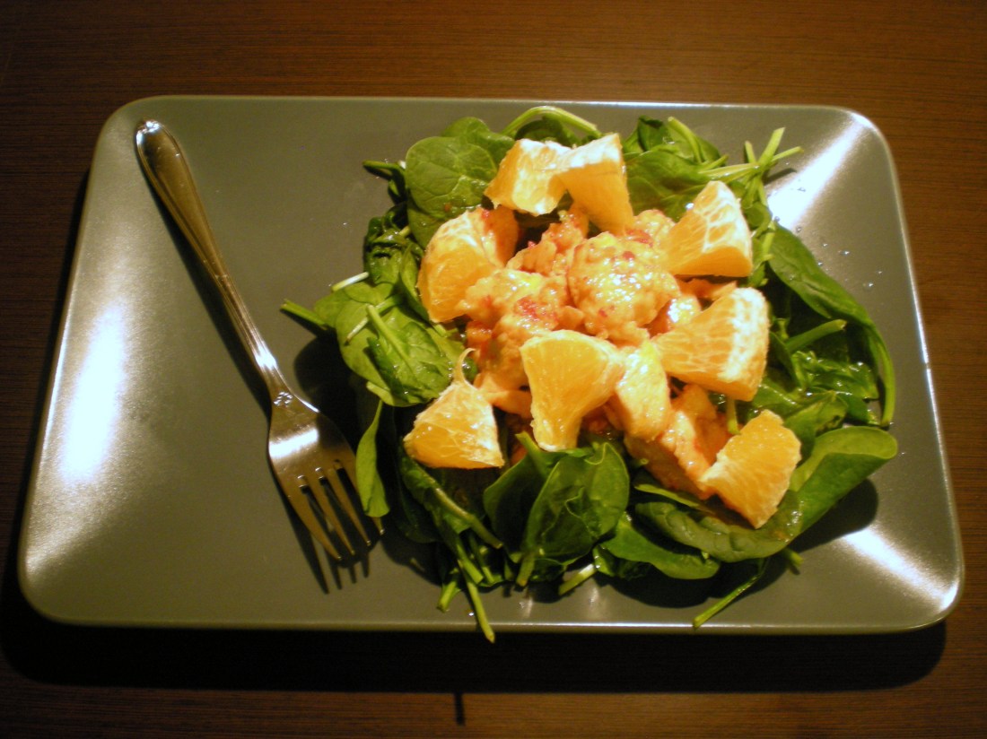 4. And the last thing: ‘arrange’ the salad on your plate. Spinach, chicken and oranges.