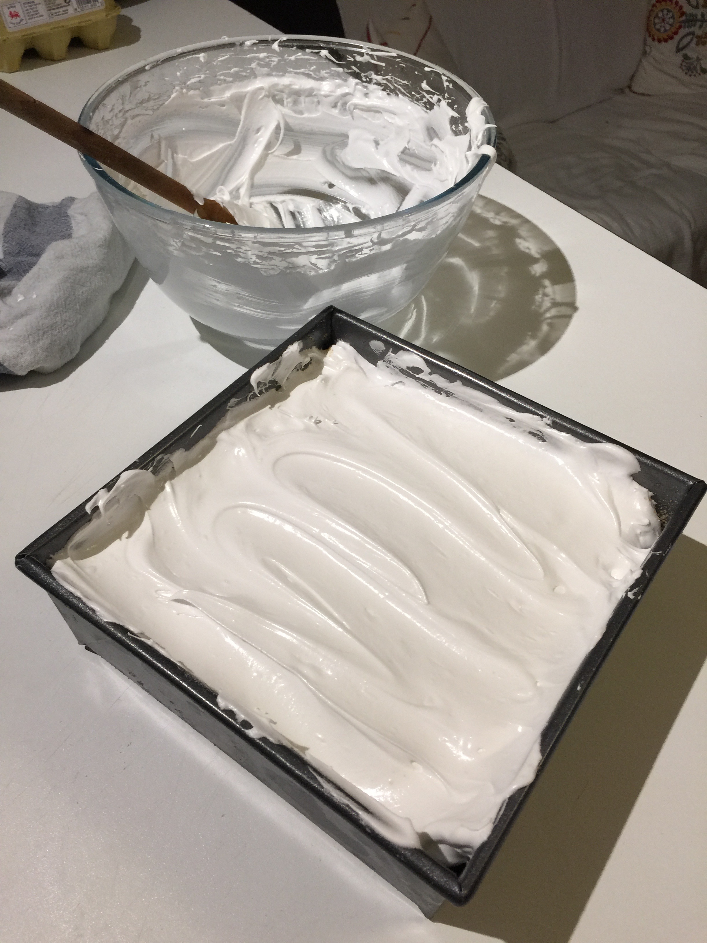 6. Bake for about 20 minutes at 170 degrees. After that time, decrease the temperature to 60 degrees and, with the fan on, ‘dry’ the meringue for another 10 minutes. Thanks to that, our meringue will be dry and crispy, not sticky. After taking the cake out of the oven, let it chill for about 15 minutes. Done!