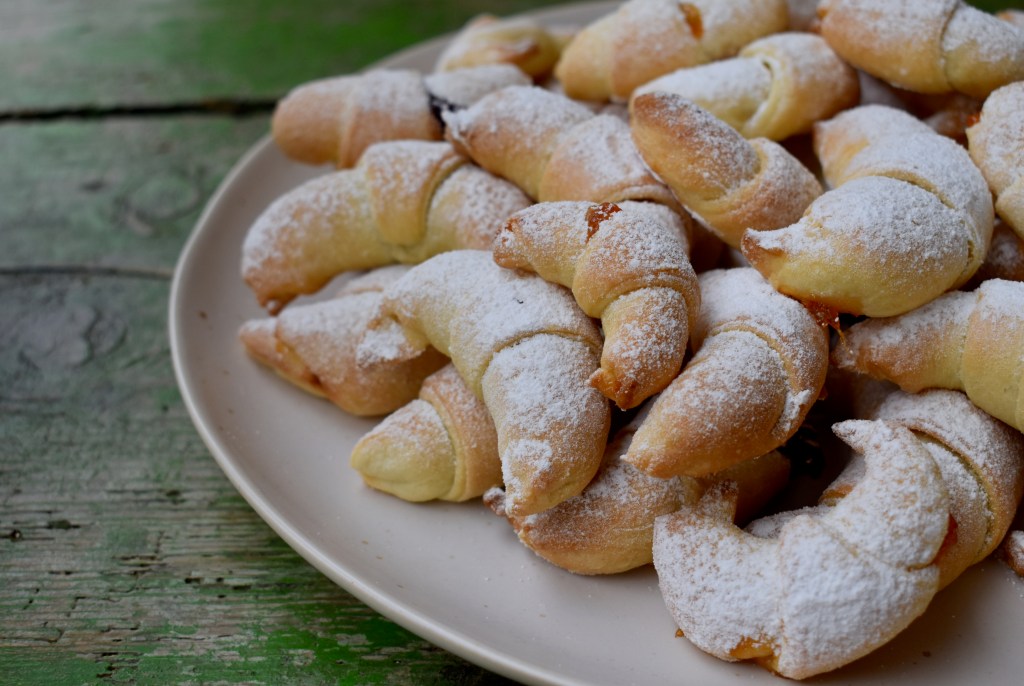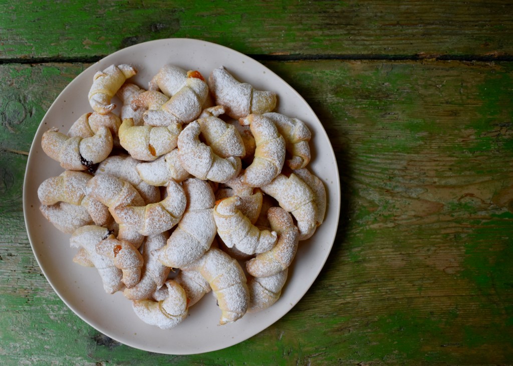 When I lived in Istria, Croatia I found myself missing my mum’s cooking a lot. Many of the Croatian and Istrian home meals are strikingly similar to what I’d have for dinner in Poland. I found many dishes in Istria very much like the Polish ones, especially when it comes to pastry. The fact that many pastries, biscuits and cakes are generously sprinkled with icing sugar in Istria was, I think, what constantly reminded me of the times when my mum used to make them. When I was growing up, I would sometimes wake up on a random Saturday to the sweet and comforting smell of something delicious being baked. It could be drożdżówki, cinnamon buns, sugar cookies or these rogaliki, that my mum always made especially delicious. And I seemed to encounter this something-sweet-being-baked smell quite often in Istria.