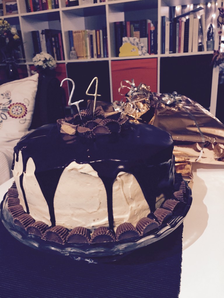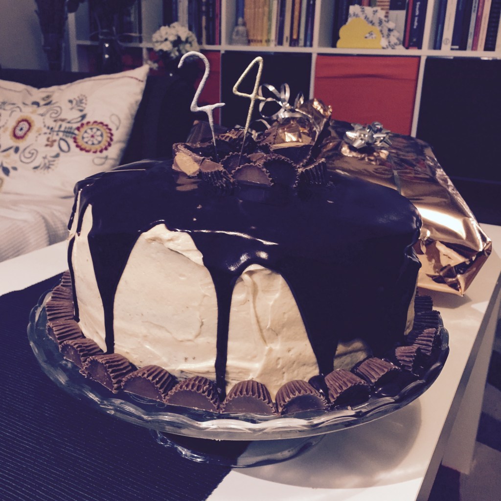 Been looking for a perfect cake for my boyfriend’s birthday, wanted to make something special, something I know he would really like. And then it hit me: he loves peanut butter! Have to say, it wasn’t the easiest cake I’ve ever made but it was so totally worth the effort. He even decided to freeze few pieces of the cake for undefined ‘later’ what makes me think, maybe he did like the cake.