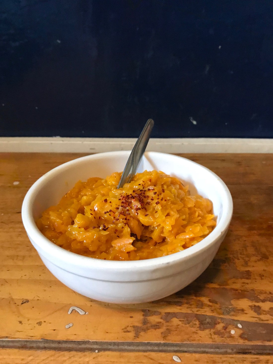 6. Let it simmer for a little bit, stirring constantly. Try and season to your taste. I always add a little bit more sugar (1 tsp), pepper (big pinch) and salt (tiny pinch, I don’t want to kill the natural sweetness of the carrots).