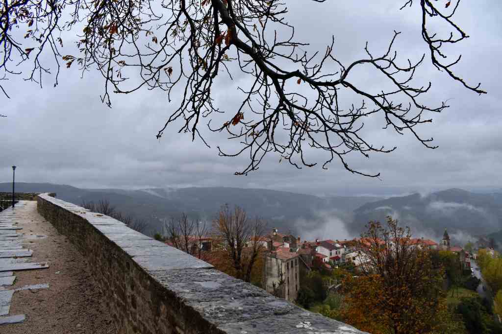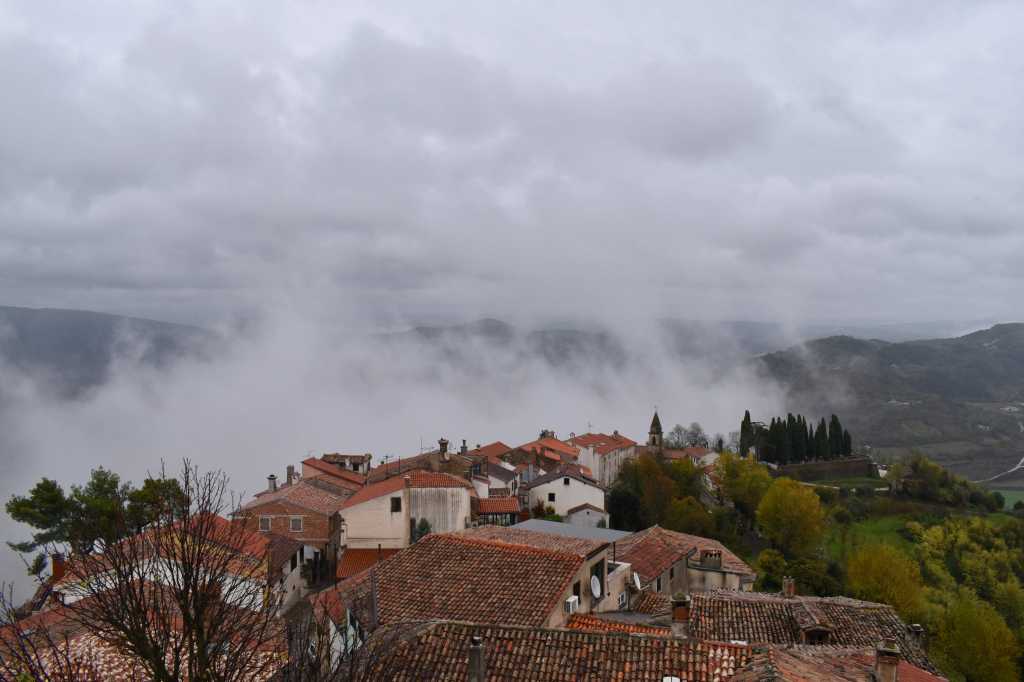 As we drove through the hills, we kept catching a glimpse of Motovun, from the turns of the winding hill road. The weather added an extra mystery to the experience, hiding the villages, meadows and forests under the veil of fog so that the hilltop towns seemed to be hovering somewhere in midair. Lit by the shy autumn sun, surrounded by mist, towering above the landscape, there it was – Motovun, the Minas Tirith of Istria. I read somewhere once, that the climate in Gondor was most probably the Mediterranean, but to tell you the truth: I always imagined it rather gloomy.