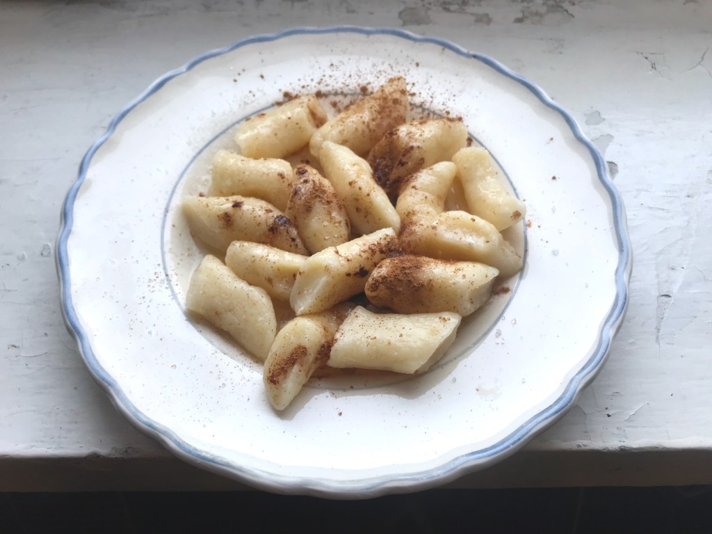 For the record: leniwy in Polish means lazy. Do you already get the picture, of what kind of dumplings leniwe are? That’s right, comfort food strikes again. Don’t get fooled by their cute shape, they really are not as difficult to make as they might appear. It takes less than an hour to whip up these little cushion-like dumplings. Served with a bit of melted butter, some sugar and a sprinkle of cinnamon, they are a foolproof mood lifter. At least for me.