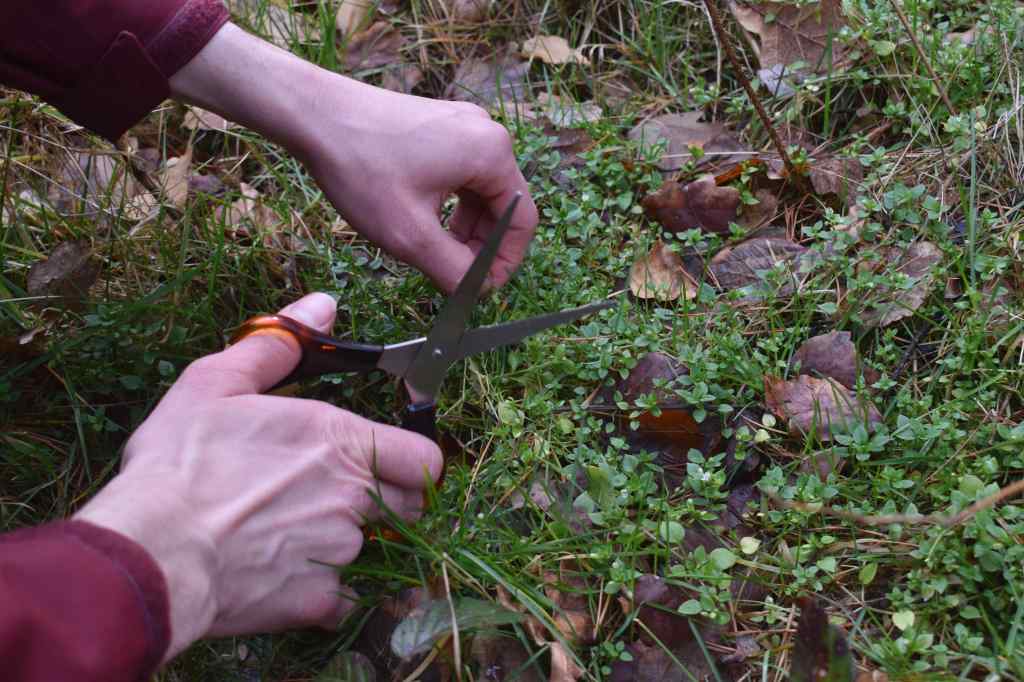 Harvesting young linden tree leaves.