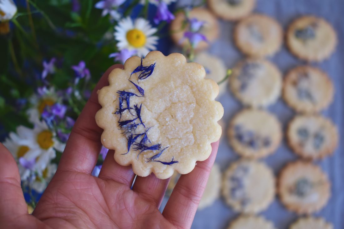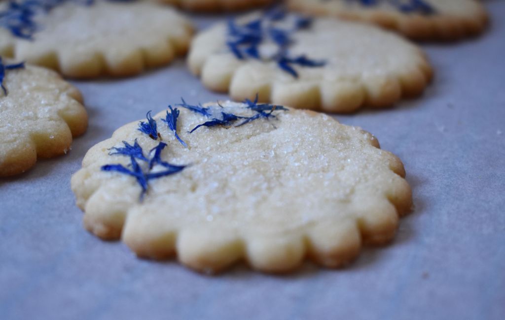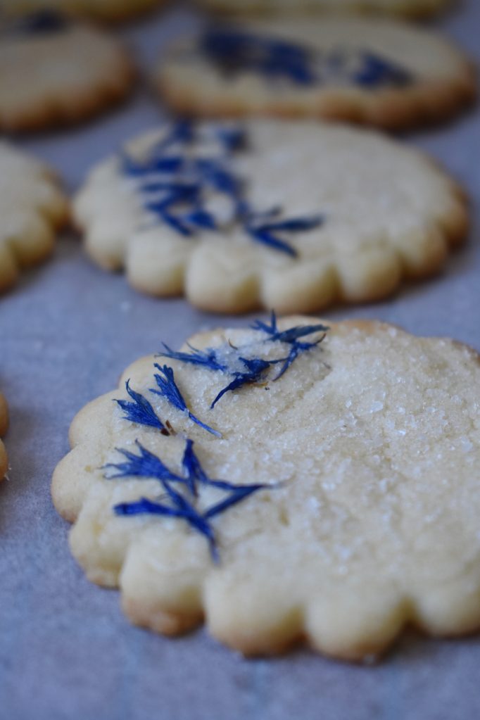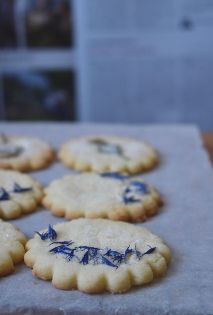 For now, a recipe for buttery shortbread biscuits with cornflower petals and a sprinkle of sugar. If they don’t say ‘summer is here’, what does? Happy baking!